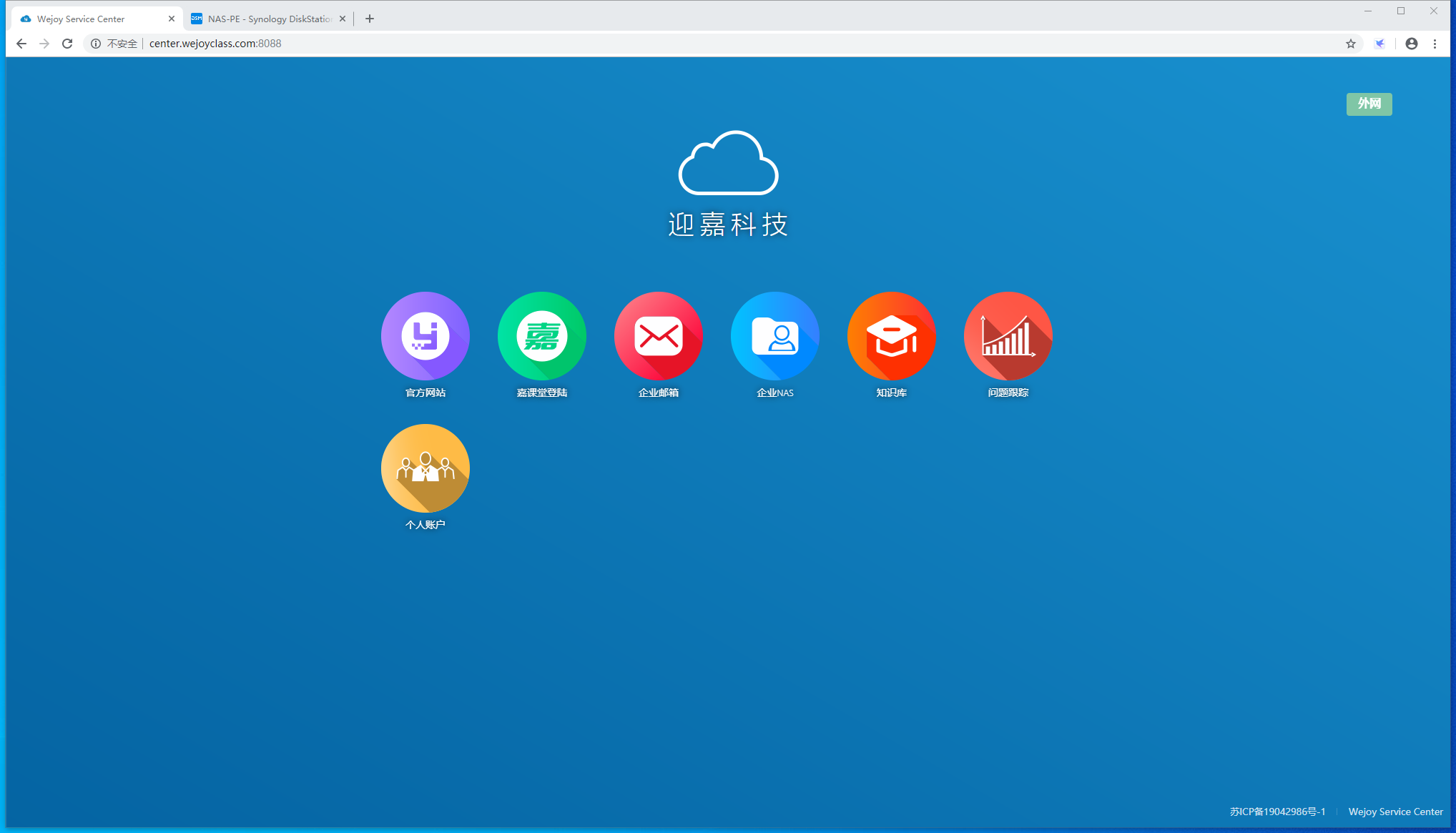 导航页包含了:迎嘉科技官方网站、嘉课堂云平台登陆、企业邮箱、企业NAS、知识库、问题跟踪以及个人账户。